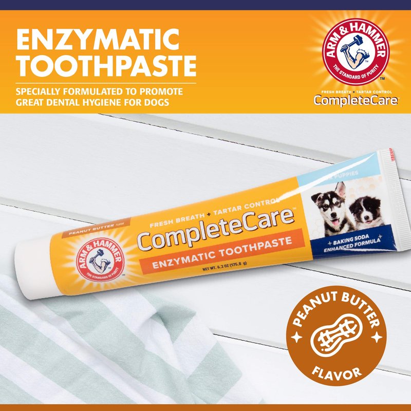 Arm & Hammer Complete Care Enzymatic Dog Toothpaste Value Size | 6.2 oz Peanut Butter Flavor Enzymatic Dog Toothpaste for Puppies | Great Tasting Dog Toothpaste with Arm & Hammer Baking Soda