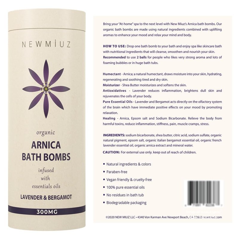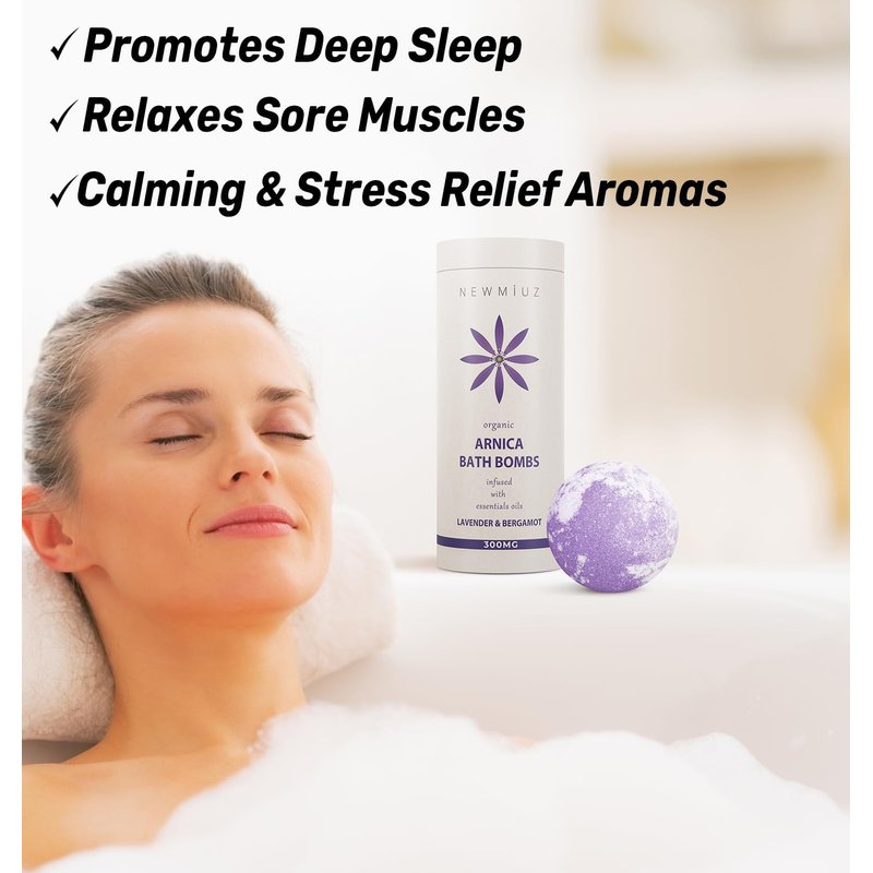 - LAVENDER & BERGAMOT INFUSION: Experience the tranquility of our arnica bath bombs, expertly infused with the soothing essences of lavender. this luxurious bath bombs, tailored for women, elevates your bathing ritual, setting the stage for a night of peaceful slumber.