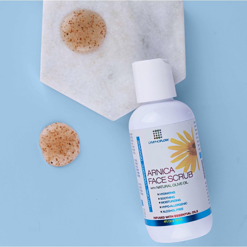 Arnica Facial Scrub, Exfoliating Face Wash for Natural Lymphatic Drainage, Face Cleanser with Soothing Arnica Montana, Exfoliator For Sensitive Skin, Acne, Blackheads, Lymph Health, 4 Oz