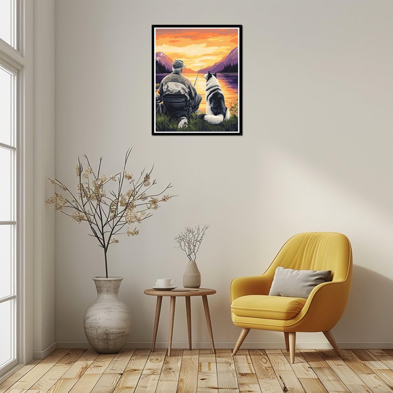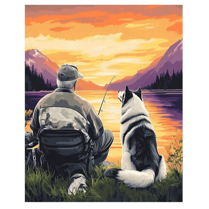 ARNLRDYA Man Fishing Paint by Numbers for Adults on Canvas Without Frame, Dog Accompanies Owner Painting by Numbers, Sunset Scenery DIY Oil Painting Acrylic Paints Kits for Home Decor(16×20inch)