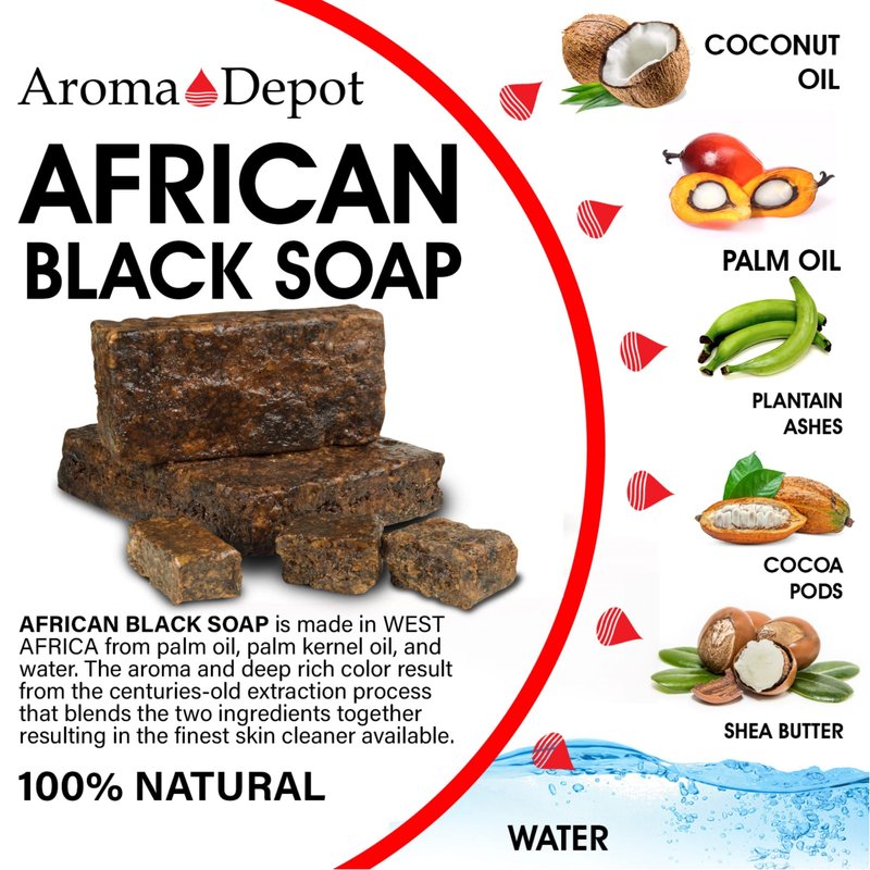 African Black Soap is a versatile skincare product suitable for all skin types, including dry, rough, oily, and moderate surfaces. It offers numerous benefits such as soothing skin irritations and reducing acne scars. Additionally, it can alleviate discomfort associated with skin conditions like psoriasis and eczema. The regular use of black soap also helps minimize early signs of aging, such as facial lines, thereby promoting youthful-looking skin. This multi-purpose soap can be used on the body, hair, feet, hands, and face. It is beneficial for various skin concerns, including eczema, psoriasis, stretch marks, acne, rashes, dry skin, itchy scalp, and sensitive skin. Moreover, it provides hydration and nourishment to the skin.