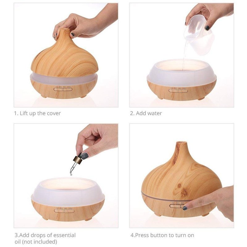 - ★【ESSENTIAL OIL DIFFUSER】A truly multi-functional aroma diffuser! Working as a humidifier for essential oils it pumps diffuser oil in a micro-fine vapor, as humidifiers for the bedroom and perfect humidifiers for office, it provides air with moisture, as a night light available in 7 Soothing LED Light. This aroma diffuser is coated with wood grain, which makes it look very natural and primitive.