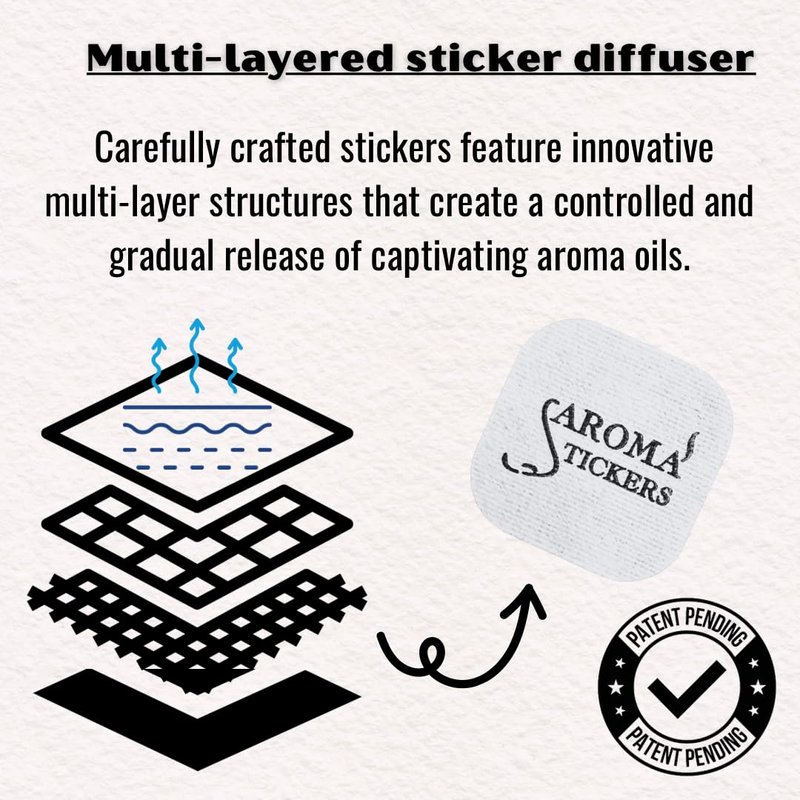 - Convenient: Enjoy essential oils without the mess. No need to drop oils on items. Simply use Aroma Stickers and replace it every time when you use. All scents are available as a pack of 1 (12 stickers/pack) or 3 (36 stickers)
