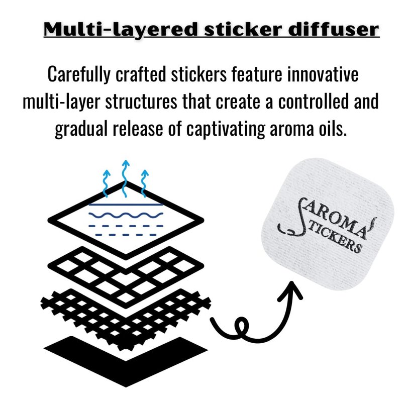 - Convenient: Enjoy essential oils without the mess. No need to drop oils on items. Simply use Aroma Stickers and replace it every time when you use. All scents are available as a pack of 1 (12 stickers/pack) or 3 (36 stickers)
