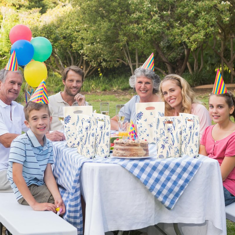 - Elegant Design: Our gift bags are designed with sketch, with hydrangea and birds printed on the surface, mainly colored in blue and white, elegant and delicate, making your wedding birthday party more chic and beautiful.