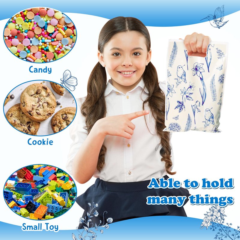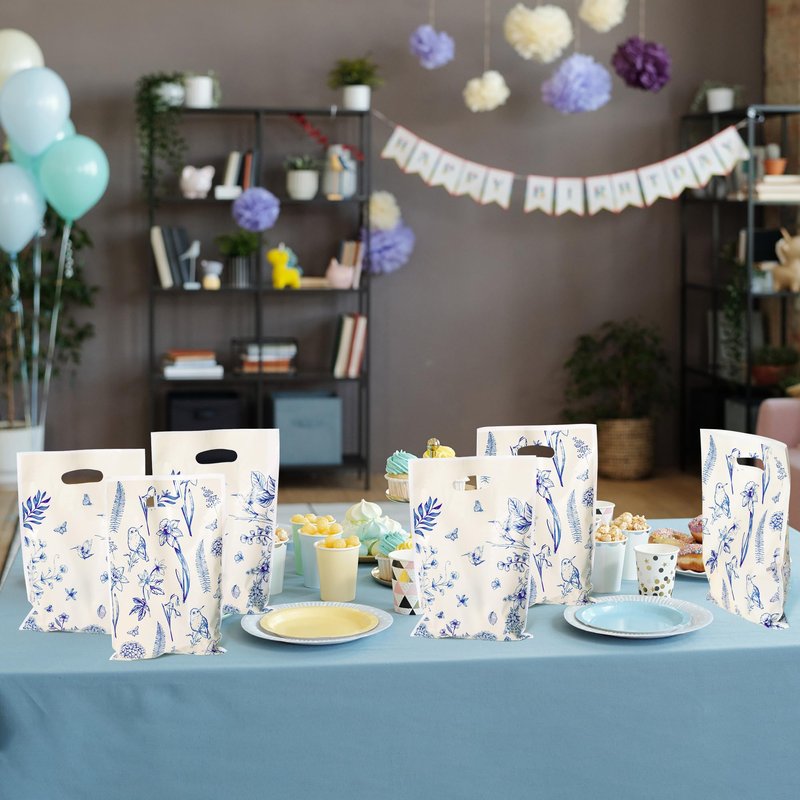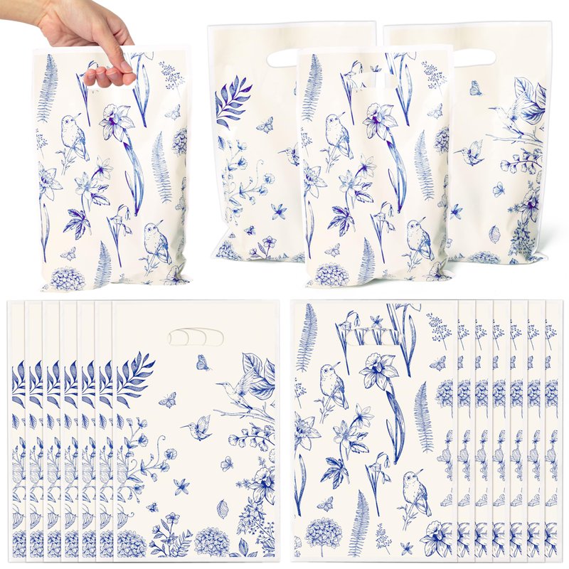 - Floral Bird Favor Bags: The package includes 50pcs blue white birds flowers plastic party bags, the perfect touch for celebrating an birds flowers themed birthday party or as a gift bag for kids and friends. Provides enough for your party, event, or everyday use.