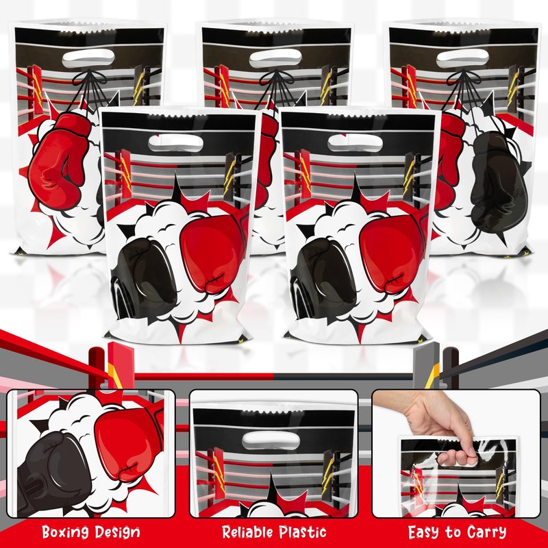 - Multi-purpose Application: Boxing plastic bags are popular with boxing enthusiasts for their large capacity and vibrant boxing print. Perfect for kids' birthday parties, boxing parties, baby showers and other celebrations, also suitable for shopping malls, bakeries, toy shops, gift shops and other occasions to increase customer visibility.
