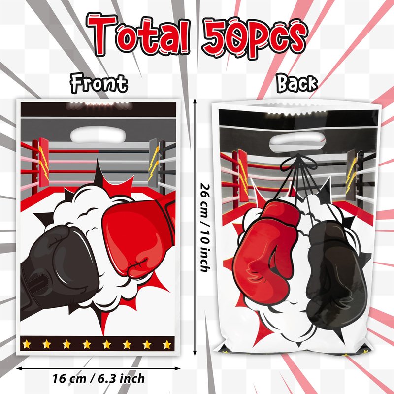 - Boxing Party Bags: The package includes 50pcs boxing plastic party bags, the perfect touch for celebrating a boxing themed party or as a gift bag for boxing lover friends. Provides enough for your party, event, or everyday use.