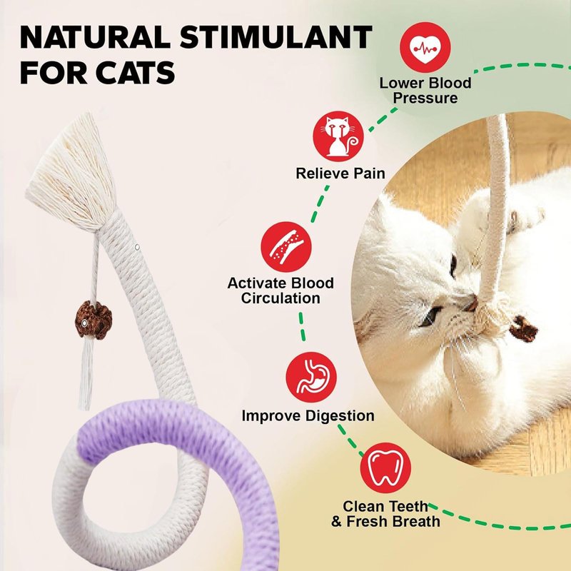 - 【Quiet Play】 These soft colorful ropes provide enriching quiet playtime without bothering cat owner's sleep or life. Your kitty will love the funny snake-like shapes, enhancing their playtime with every pounce and bite.