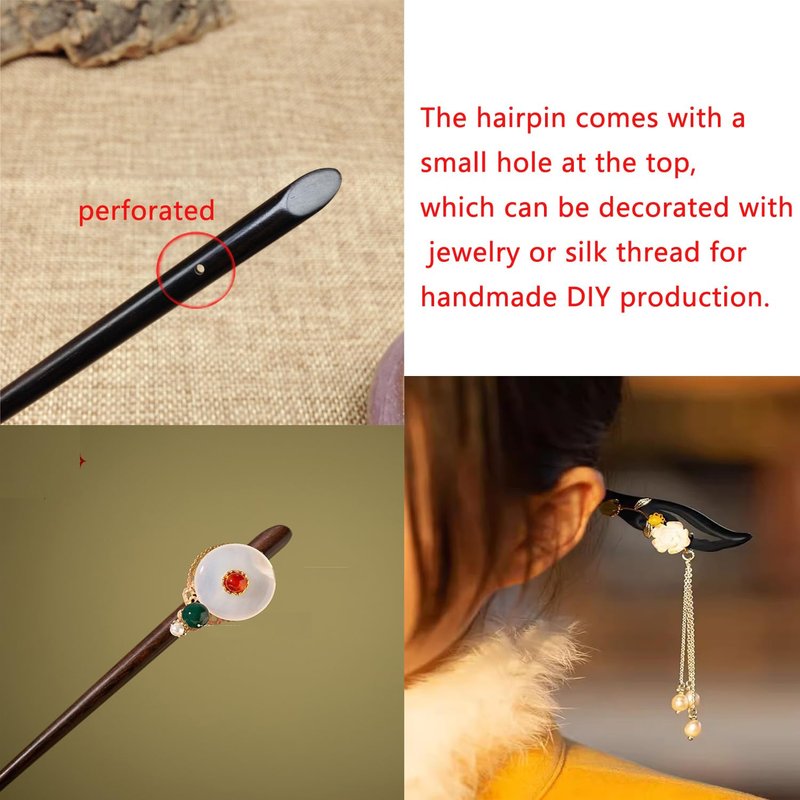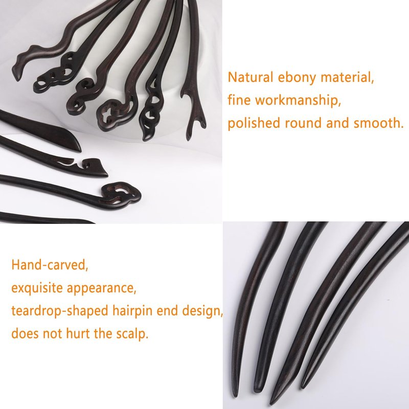 - Wooden hairpin selected high-quality logs made of natural ebony, artisanal craftsmanship, handmade polished and polished, the surface is rounded and smooth, does not hang hair, disk hair smooth.