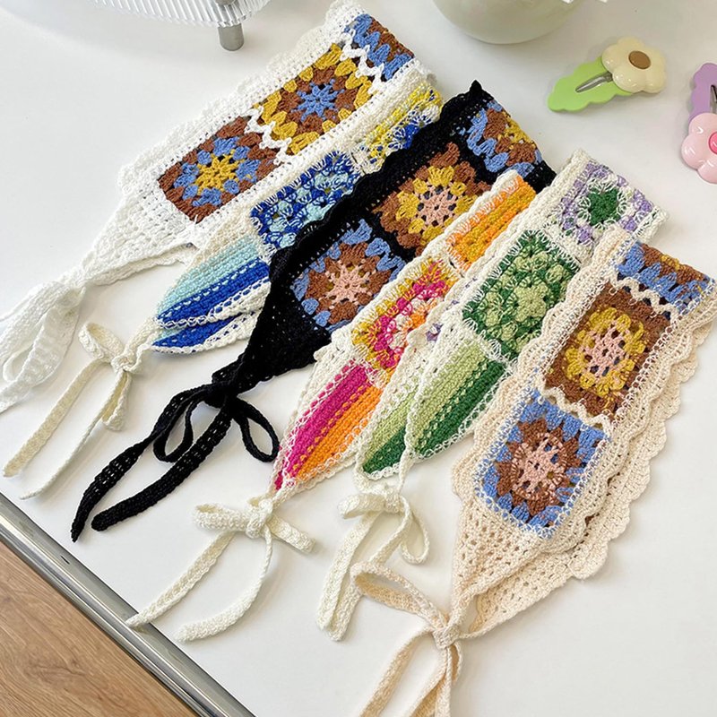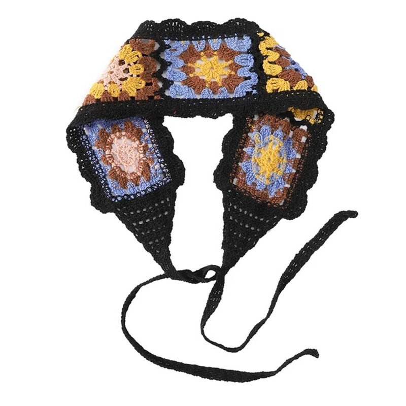 ArrErr Boho Headbands Hair Bandeau Women Turban Vintage Folk Scarf Hippie Crochet Knitted Woven Headwrap Hair Band Floral Head Wrap Bandanas for Girls, Black