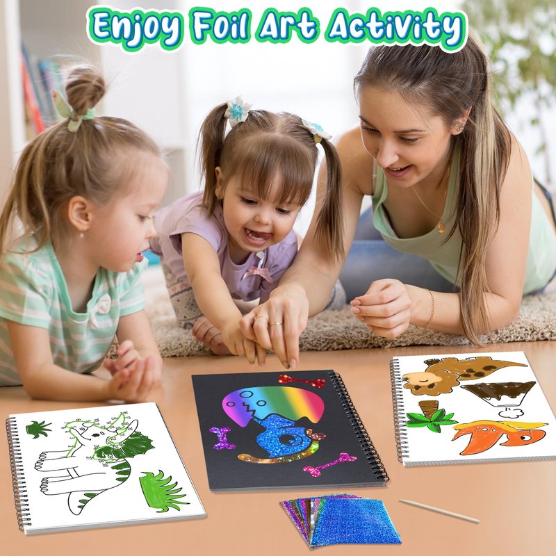 Art & Craft Activity,Foil Craft Dinosaur DIY Art Fun Kits,No Mess Creative Foil Art Kits Set Drawing Game for Kids,Birthday Gifts Crafts Supplies Travel Toys for Girls Boys Ages 4 5 6 7 8 9 Year Old
