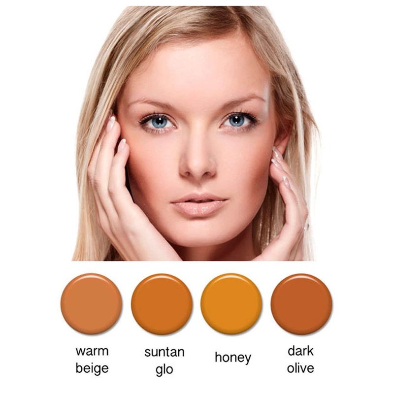 - Foundation Colors: Warm Beige, Suntan Glo, Honey, Dark Olive