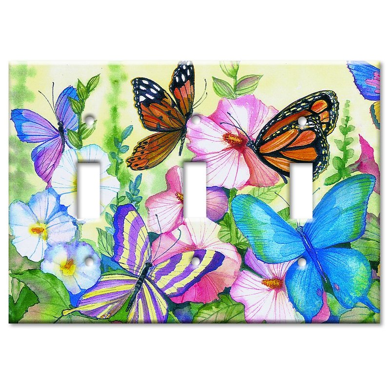 - Art Plates Brand Decorative Printed Triple Gang Toggle Switch Plate - Garden Butterflies