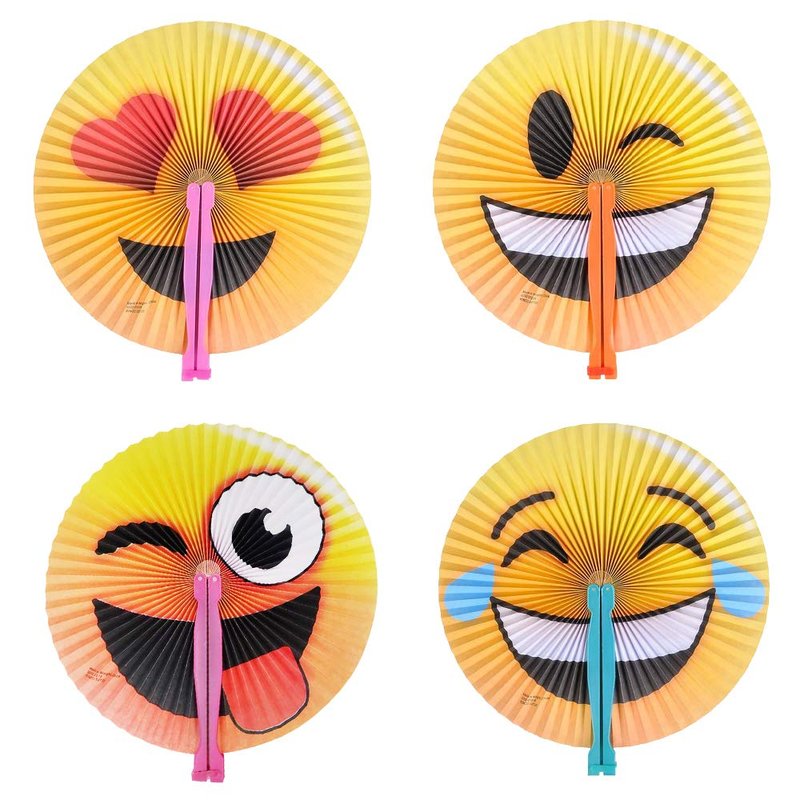 - AWESOME ASSORTMENT: You’ll find all the classic emoticons here! From smiley faces, winky faces, heart-eyed emoticons, laughing emoticons, to so much more. The paper fans are fitted with a colorful plastic handle. Unfold them and flaunt your favorite emoticons.
