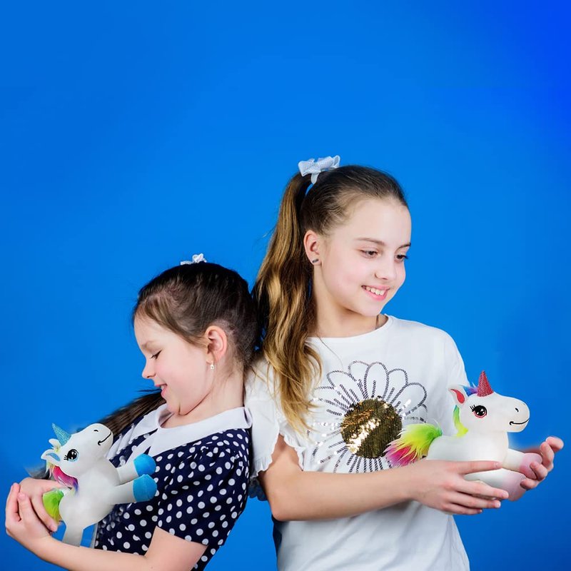 - DOUBLE THE CUTENESS: A fantastic treat inspired by fantasy! This pack comes with a SET OF 2 mini unicorn plush toys, each measuring 7” long. Soft and floppy, these little darlings are a recipe for amazing hugs and cozy cuddles. Little princesses will love them!