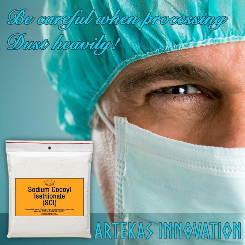 ✅ Be sure to wear a protective face mask when working with Sodium Cocoyl Isethionate (SCI) Powder. It is a very volatile substance and a strong irritant to the breath trails!