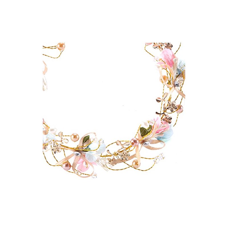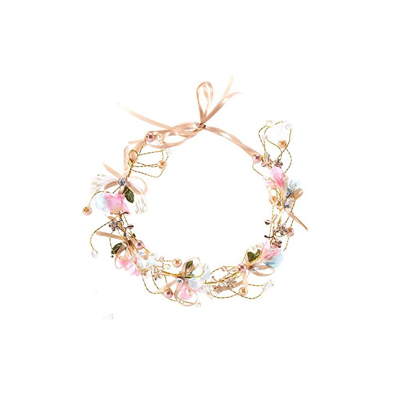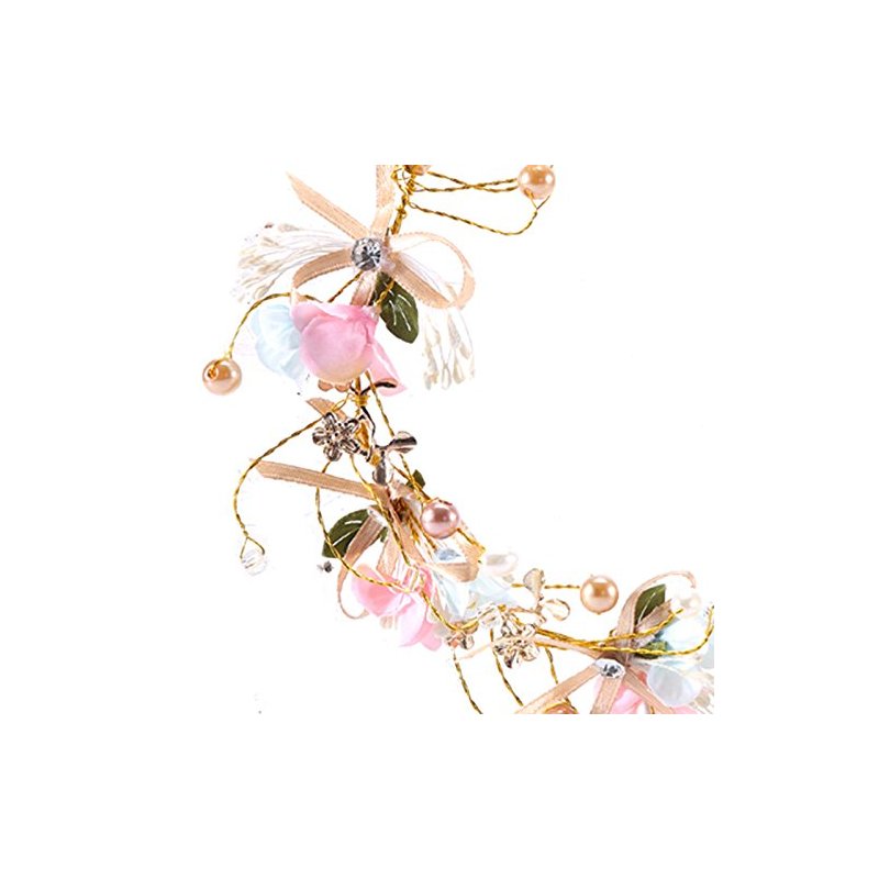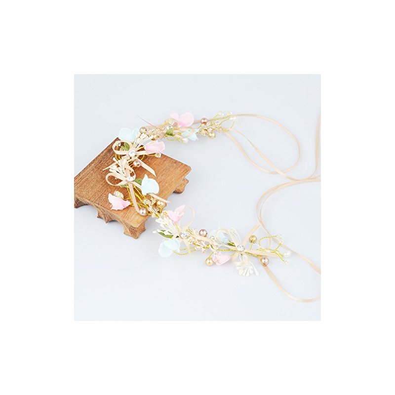 Artfen Handmade Bridal Flower Garland Bow Headband Bridesmaid Children Crown Hair Wreath Halo Adjustable Ribbon Wedding Festivals Party Cosplay