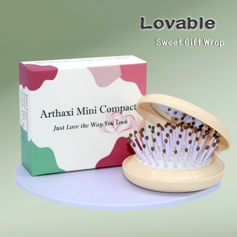 Arthaxi mini hair brush with mirror is made with sturdy ABS material. It is designed with both mirror and brush, which greatly saves space in your purse or luggage. A small hair brush mirror does huge job for ladies to touch up and powder nose when they are going out. Mirror makes face tidy, brush makes hair tidy. Arthaxi purse compact makes great lady. It helps you score at each party.