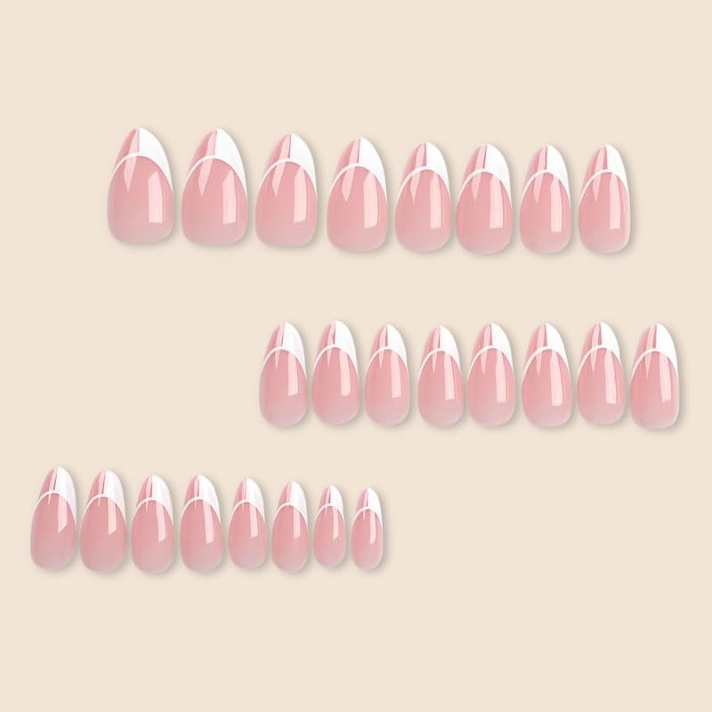 ArtiClaws Press On Nails Medium Almond Nude Pink French Tip 24 Pcs Nails Press ons Acrylic Glossy Artificial Nails Prep Kit