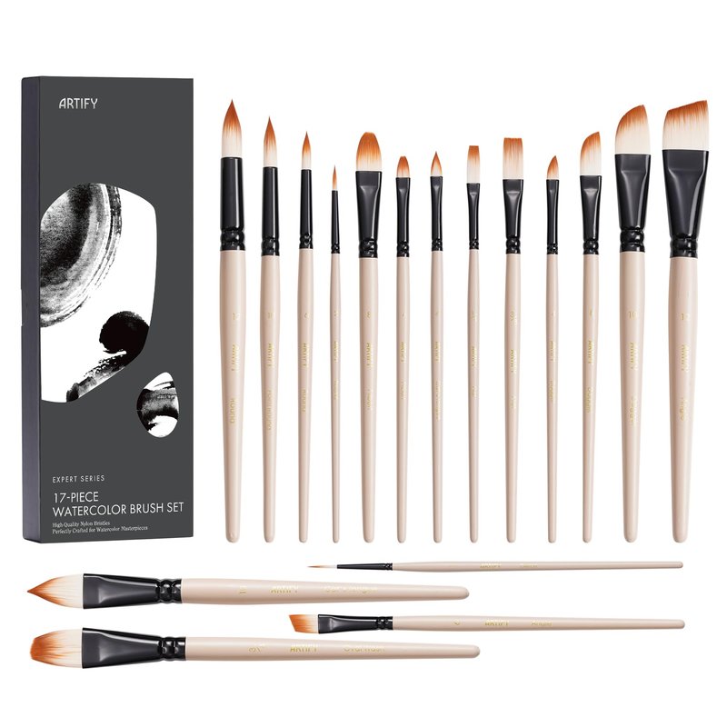 ARTIFY Watercolor Brush Set, 17 Pcs Professional Paint Brushes with Multiple Types for Beginners and Artists, Suitable for Watercolor, Gouache, Acrylic, Ink, Tempera, and Fabric Painting