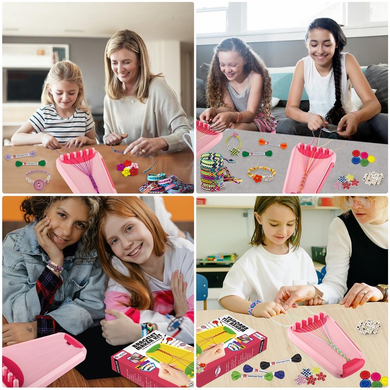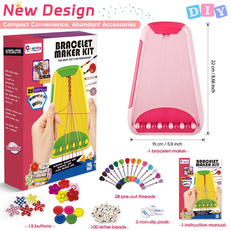 - Abundance of Accessories:The Arts and Crafts kit includes 28 bundles of thread in 14 vibrant colors, along with letter beads, buttons and it provides 5 non-slip pads that can be securely attached to the table. Furthermore, it comes with a step-by-step instruction guide featuring a clear combination of pictures and text to help you get started quickly. It's easy to take with you on road trips or when traveling by car or airplane