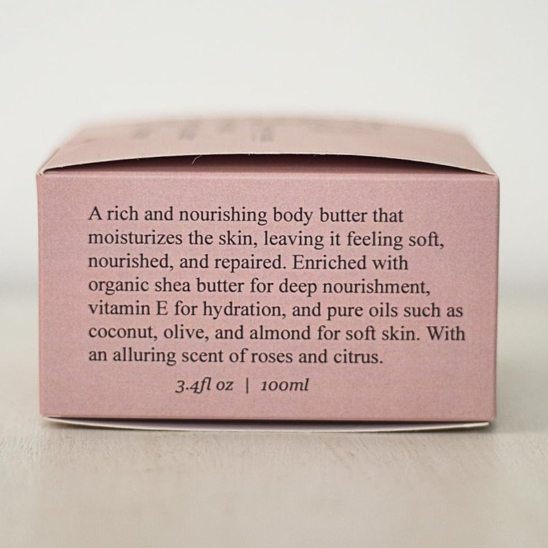 - A LUXURIOUS BODY BUTTER: A non-greasy, hydrating natural body butter infused with silky wild rose and jojoba and oils and shea butter. Use it to help smooth fine lines & as a dark spot corrector. NON-GMO, GLUTEN & PARABEN FREE!