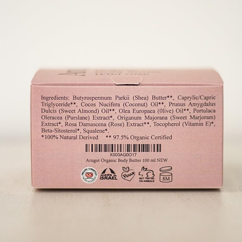 Arugot Organic Wild Rose Natural Nourishing Body Butter, Made in Israel | Moisturizing Cream with Shea Butter for Happy Skin - Paraben Free & Vegan Friendly, 120ml