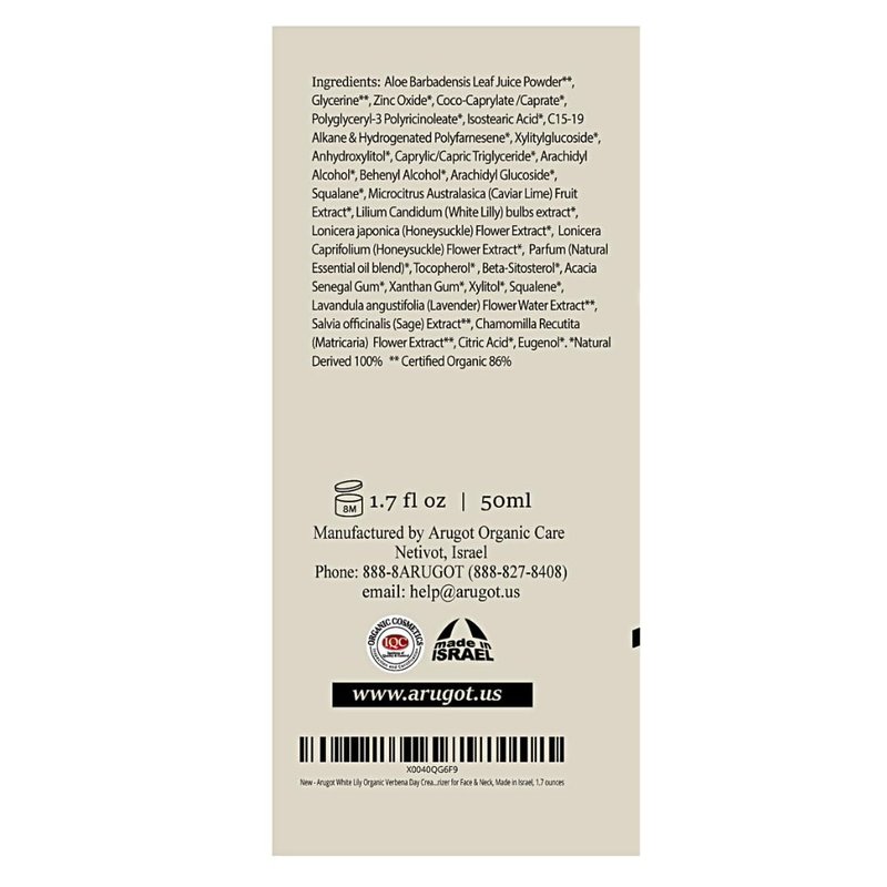 Arugot White Lily Organic Verbena Lightweight Day Cream for Acne & Pimple Prone Skin, Skin Clearing Moisturizer for Face & Neck, Made in Israel, 1.7 ounces