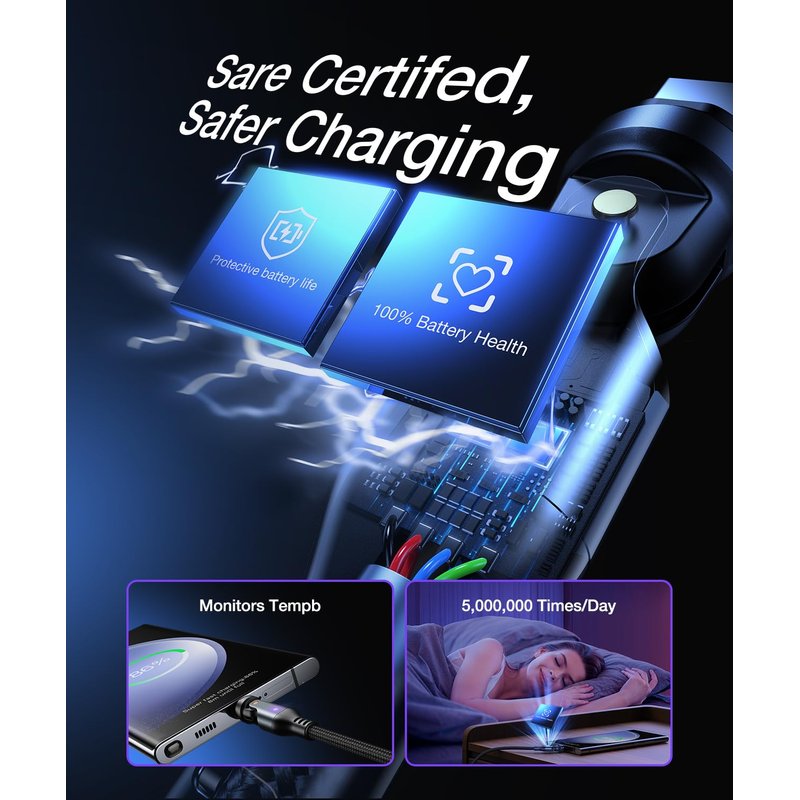- ๐๐๐ยฐ+ ๐๐๐ยฐ๐๐๐๐๐๐๐๐ ๐๐๐๐๐๐: Discover the ultimate flexibility with our Magnetic Phone Charger, a magnetic charging cable that redefines convenience and protection. With a remarkable 540-Degree Rotation capability, the magnet tip of our Magnetic Charger Cable can rotate a full 360ยฐ, while the charging head bends an impressive 180ยฐ. This innovative design allows you to adjust the charging angle effortlessly, accommodating any situation and ensuring optimal charging alignment.