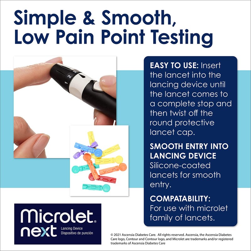 - SMOOTH & PORTABLE TESTING: For use with MICROLET silicone-coated lancets for smooth entry