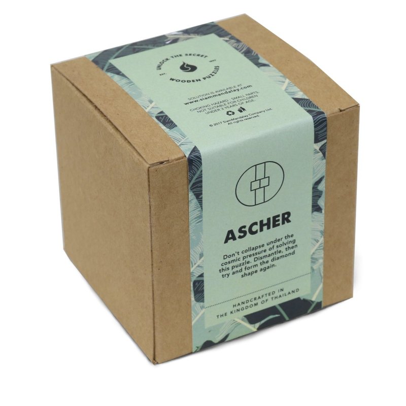 Ascher: 3D Brain Teaser Wooden Puzzle for Adults from SiamMandalay with SM Gift Box(Pictured) - Handheld, Organic & Deluxe Quality Lotus Kumiki
