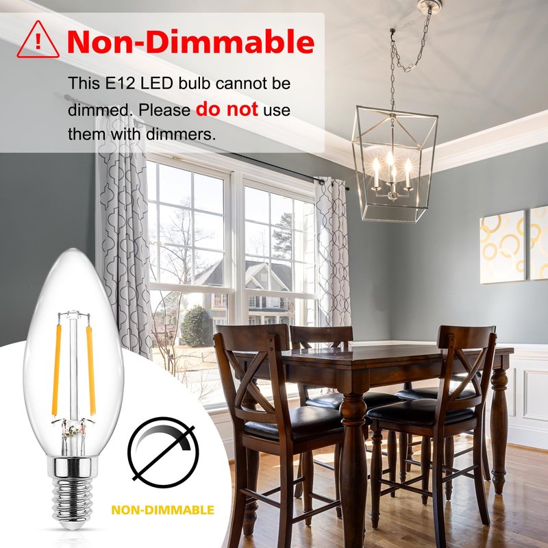 - Note: This E12 LED bulb is not dimmable, please DO NOT use it with dimmer switch. Please kindly check the product dimension before purchase!