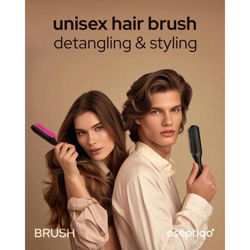 Aséptiqo Brush - Premium Detangling Hair Brush, Compact & Easy to Clean Multi Purpose HairBrush for Women, Men, Kids - Ideal for Straight to Wavy Hair, Wet or Dry, Heat Resistant Hair Brush