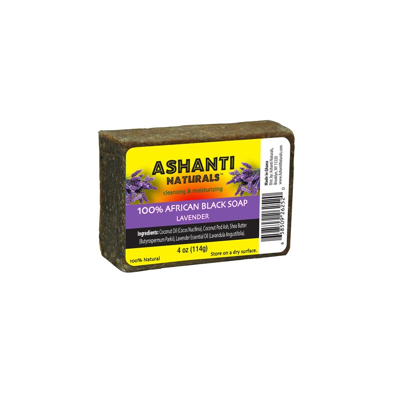 Ashanti Naturals Authentic African Black Soap Bar - African Black Soap Face Wash Acne Soap Bar, Natural African Black Soap Body Wash, Black Soap African Shea Butter for Smooth Skin (Lavender, 4 oz)