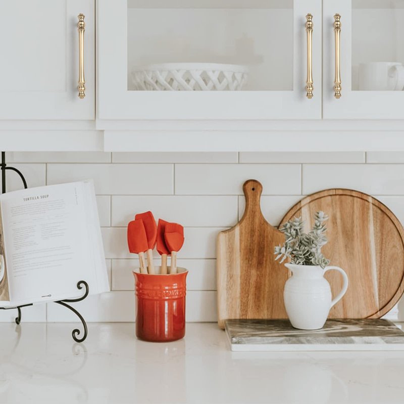 Asidrama 6 Pack 5 Inch(128mm) Brushed Brass Kitchen Cabinet Handles, Gold Cabinet Pulls Kitchen Cabinet Hardware for Cupboard Drawer Pulls