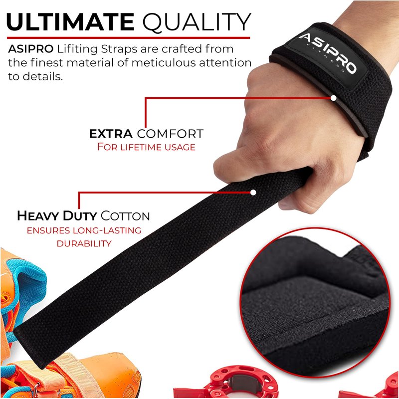- No Fear of Tear and Cracking Weightlifting Straps Wrist: Weight lifting wrist straps men & women high-quality cotton material gives you a feel of professional standards. These ASIPRO wrist straps gym gives you durability during your long workout sessions.