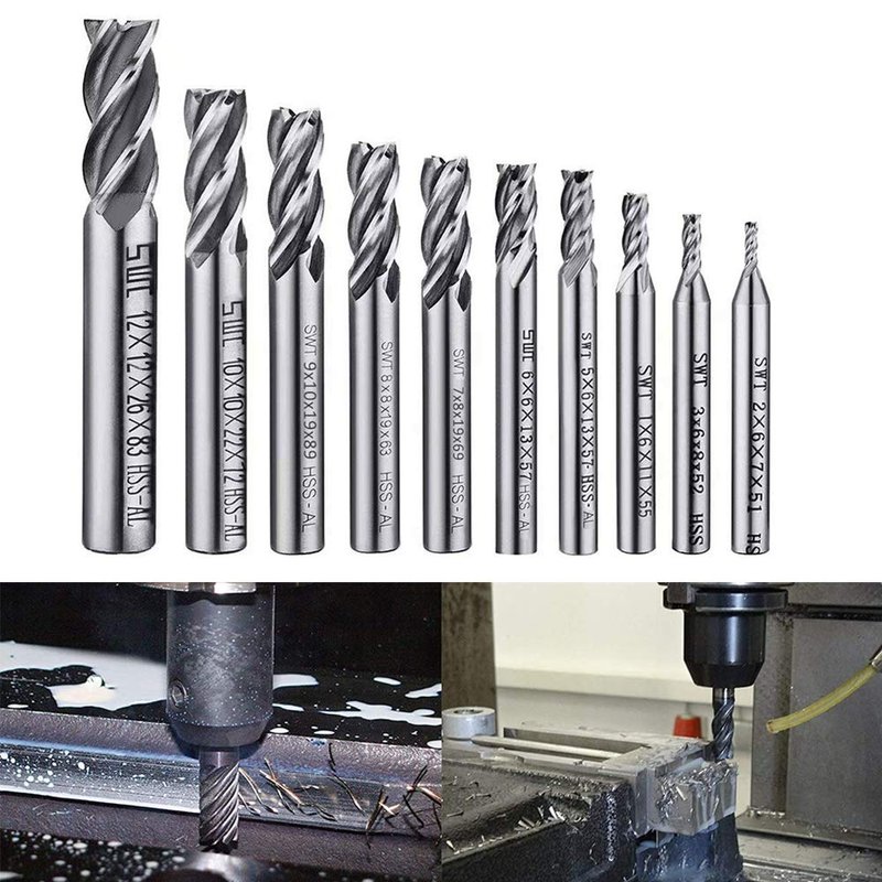 - 2-12mm End Mill Set: This end mill set includes 10 diameter sizes of 2mm, 3mm, 4mm, 5mm, 6mm, 7mm, 8mm, 9mm, 10mm, 12mm, can satisfy all your different needs.