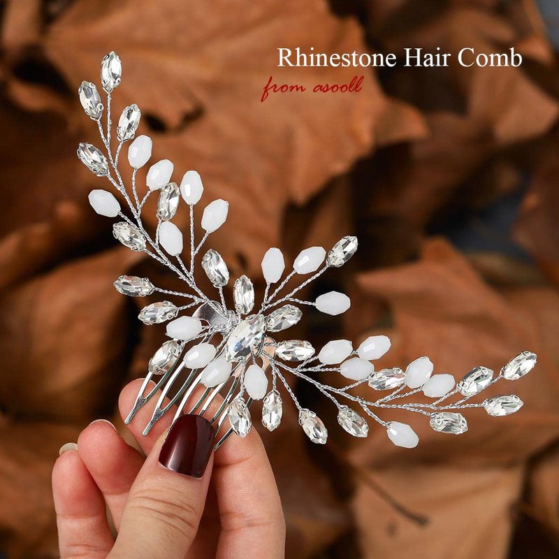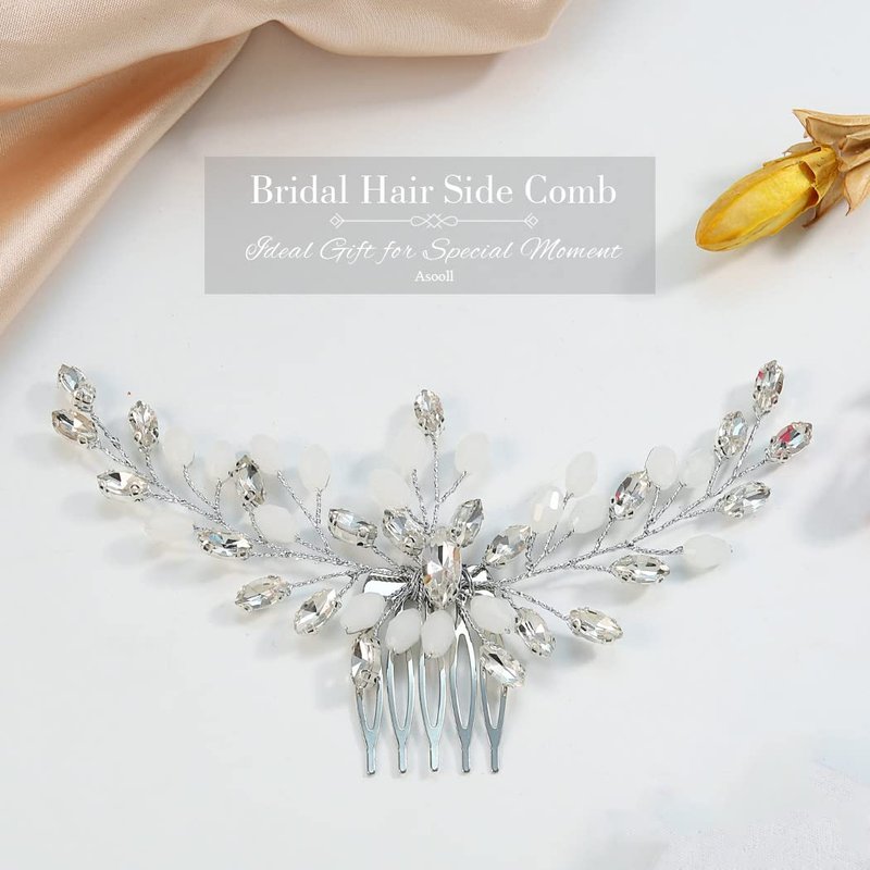 Asooll Crystal Bride Wedding Hair Comb Silver Rhinestone Bridal Hair Clips Hair Accessories for Women and Girls
