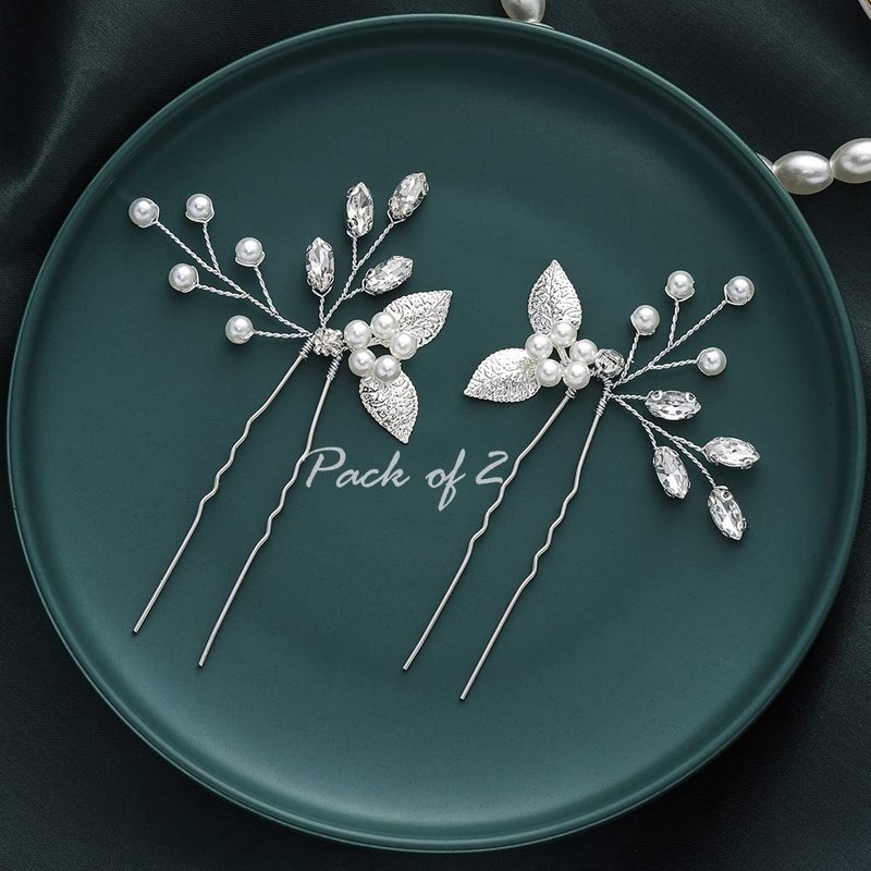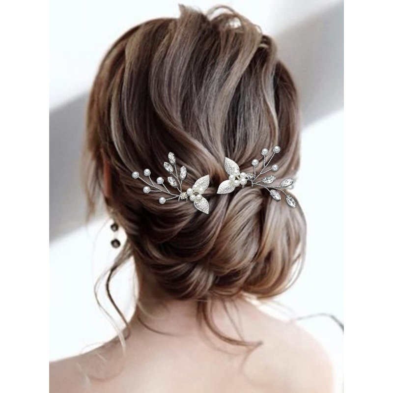 - Leaf hairpins for wedding are made of sparkly rhinestones and pearls . Delicate hairpiece is perfect for hair decoration and different hair styles.