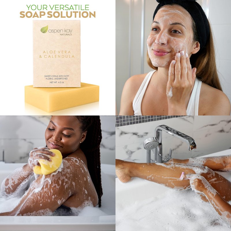 Aspen Kay Naturals Handmade Aloe Vera & Calendula Soap for Face & Body - Natural & Organic Ingredients - Organic Aloe Vera, Calendula & Turmeric - Shaving Soap – Made in the USA 4.5 oz