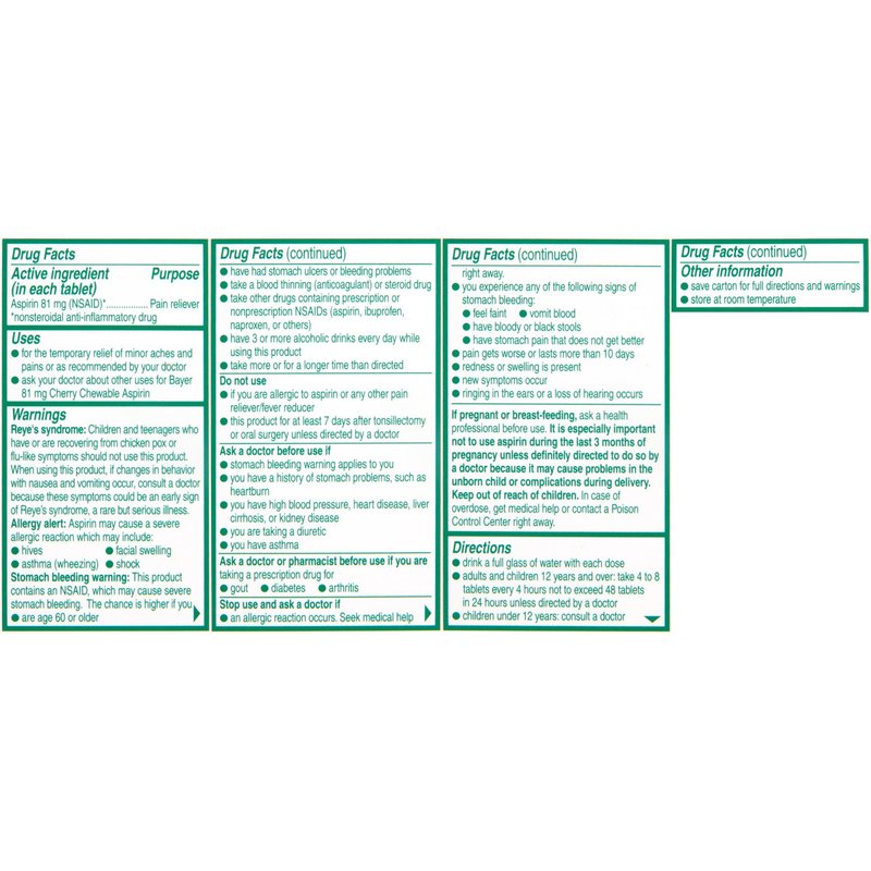 - Is available in pleasant cherry and orange flavored aspirin tablets