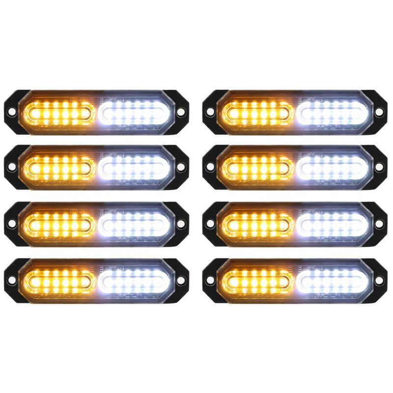 ASPL 8pcs Sync Feature Ultra Slim 12-LED Surface Mount Flashing Strobe Lights for Truck Car Vehicle LED Mini Grille Light Head Emergency Beacon Hazard Warning lights (Amber/White)