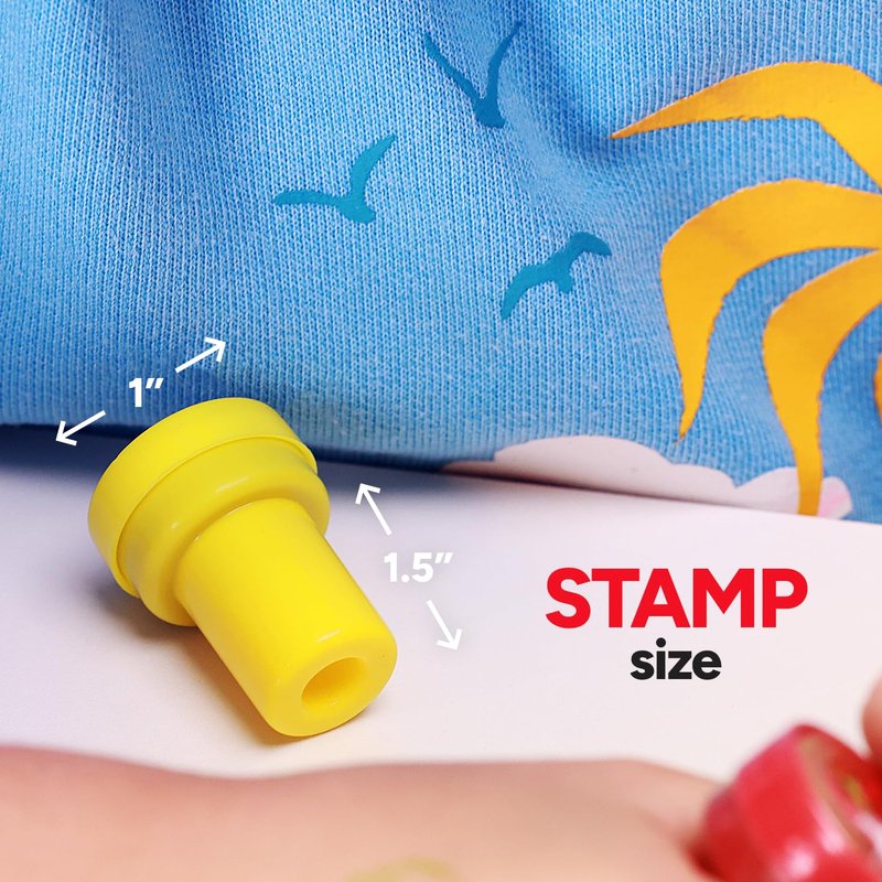 - Kids Stamp Set includes 50 pieces fun stampers with different designs: sea animals stamps, dinosaur stamps, dog stamps faces, emoji stamps, ball stamps. Each size is approx 1.5’’ x 1’’