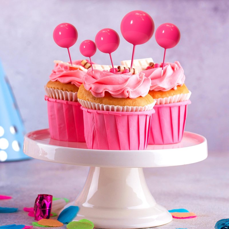 ASTARON 20 Pcs Ball Cake Topper Decorations Mini Balloons Cake Topper Sticks Hot Pink Balls Cake Picks Cake Topper Balls Cake Decorations for Wedding Birthday Cake Decorations
