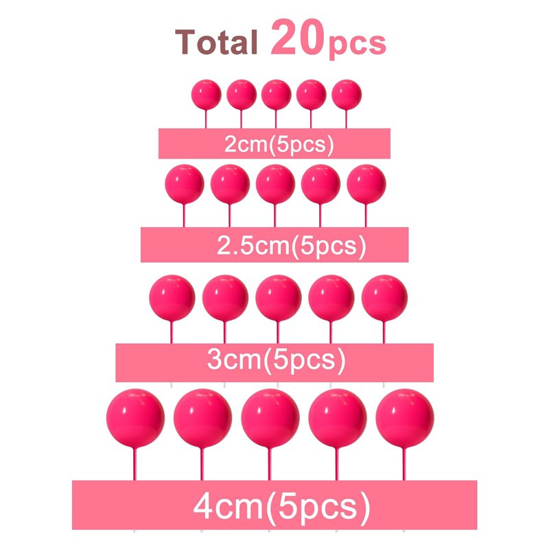 - Package includes: 20 pcs hot pink ball cake decorations. The diameter of these ball cake toppers are 0.79 inch/ 2 cm, 0.98 inch/ 2.5 cm, 1.18 inches/ 3 cm, 1.57 inches/ 4 cm, 5 pieces of each size.
