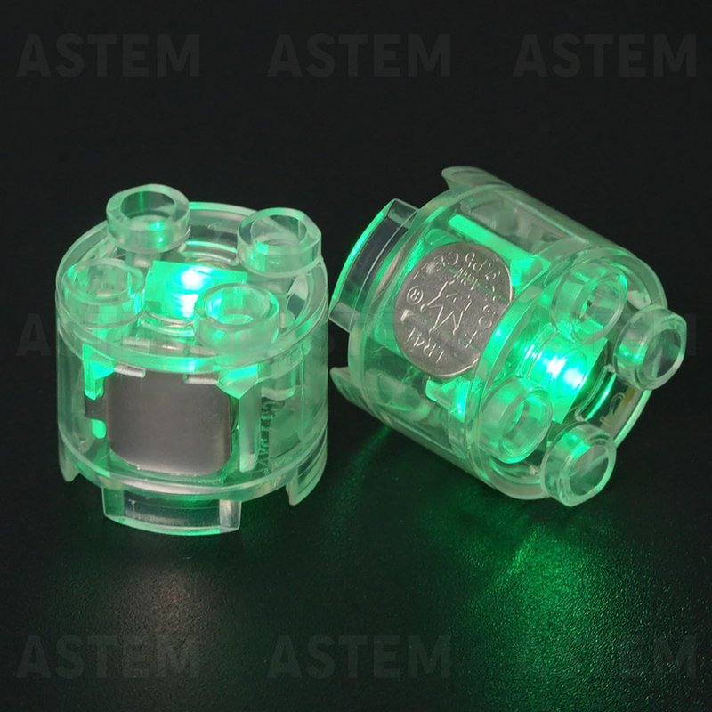 ASTEM Green Light-Up-Bricks Accessories Kits, 2x2 Classic Transparent LED Light Brick Pack, 6PCS Parts Building-Blocks Set Toys