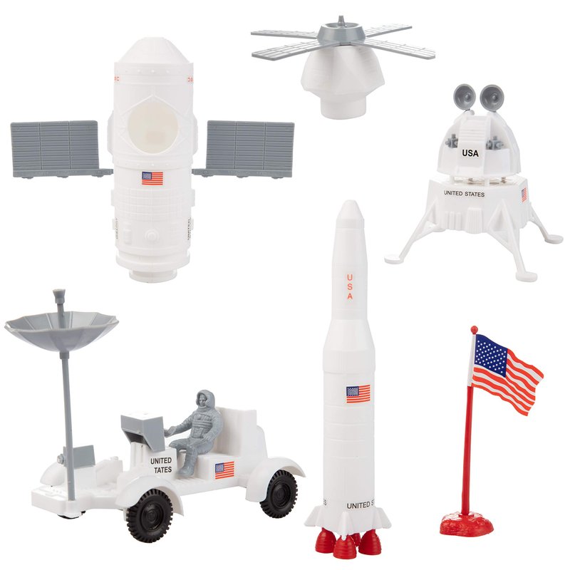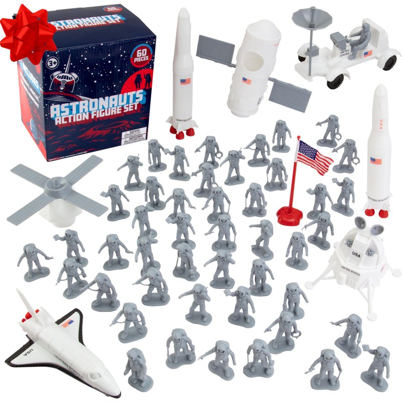 - 60 Piece set includes Astronauts, Rockets, Rovers, Satellites and More