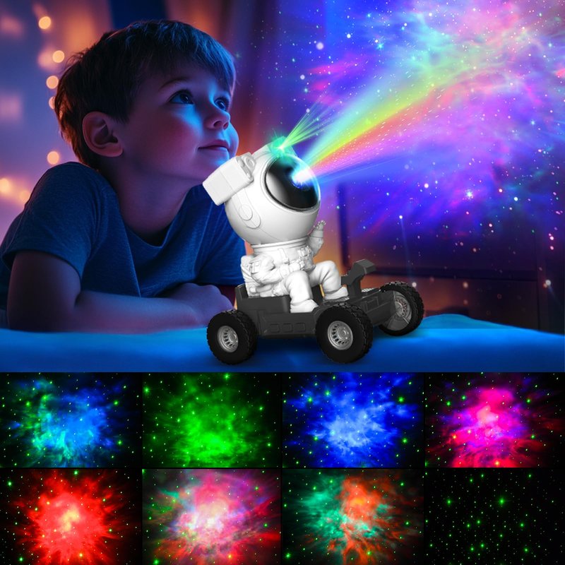 - 【Unique Lunar Rover Shape Design】This is a unique Lunar Rover Shape Astronaut Galaxy Projector. Different from the stereotyped standing astronaut projectors on the market, our design is inspired by the lunar rover, with a sense of technology and mystery from the universe. Project it onto the indoor ceiling or wall, allowing you to immerse yourself in the vast Milky Way galaxy and enjoy this visual feast.