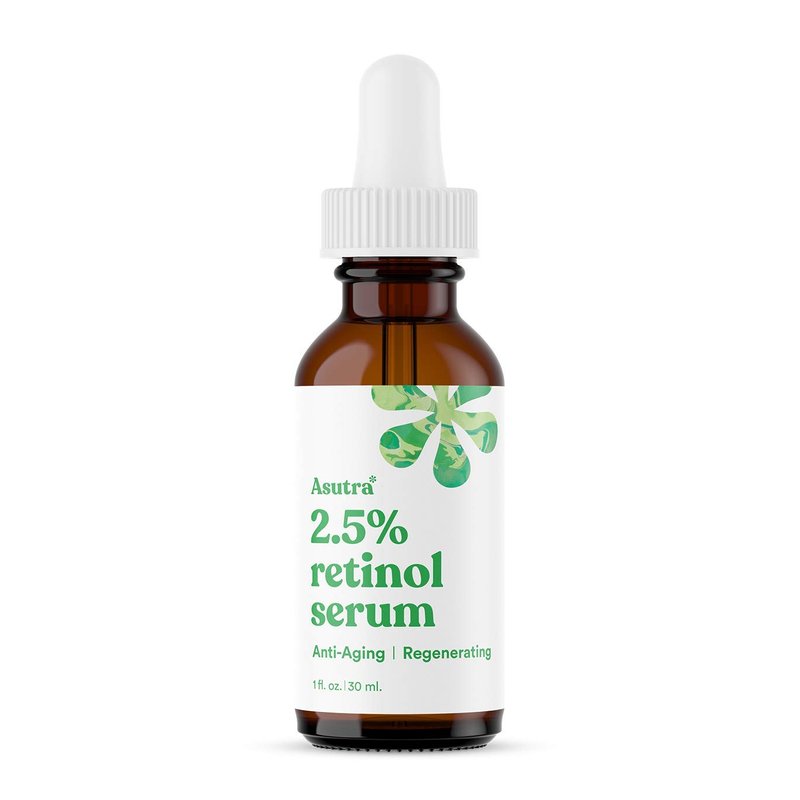 ASUTRA 2.5% Retinol Serum, 1 fl oz - Hyaluronic Acid, Vitamin E, Wheat Germ, Aloe, & Jojoba Oil, Plumping Face Serum